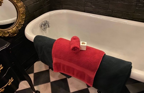 Also, the bathroom has a vintage clawfoot tub, but no shower.