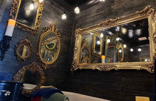 Inspired by our favorite wizarding school across the pond, full of treasures in honor of magical friends, this tiny home is full of charm and magic to explore during your stay. This is a wizarding paradise, tucked away from the prying eyes of Muggles. It is an inviting and truly wonderful place filled with magical relics, games to play, books to read, movies to enjoy, and things to explore and experience.