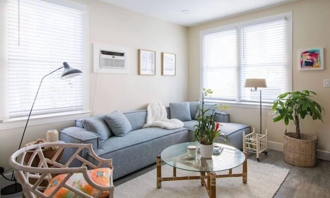 This charming ground floor unit, located in a historic cottage, features a bedroom, bathroom, full kitchen, dining and living space. Curated with midcentury design icons such as Mcguire, Lane, and Bernard Schottlander to name a few.