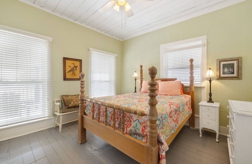 * Room 34: 1 king bed, large room, ensuite full bathroom with clawfoot tub/shower, NE & SE-facing windows over 2nd Street, town and gulf views.
