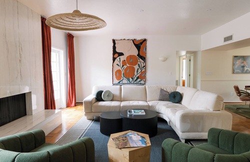 The vibes are strong here. Curated to be comfortable, warm, welcoming, & unique. We focused on indoor/outdoor living & creating core memories. Private, spacious, & located in the historic Blenman-Elm neighborhood, The Drachman is just 3 blocks from UA & Banner with a heated pool & hot tub.