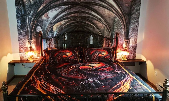 Make magical memories in this Dragon-themed house! Gather your friends, including furry ones, create a Renaissance Fair getaway, Romantic Royal stay, or fun filled adventure.
