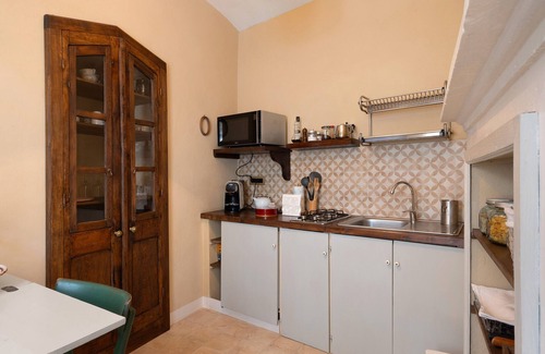 The Piccolo Appartamento room offers you a bedroom and a private bathroom, a large terrace overlooking the garden, Wi-Fi suitable for video calls, TV, fan, a fully equipped kitchen, and the possibility to use the washing machine. The accommodation is located in a large early 20th-century house, built with tuff and bricks, completely renovated with natural materials chosen to preserve its essence. You can access a patio with views of vineyards and hills, ideal for relaxing, or choose the small, more private zen garden. The environment is quiet and peaceful, perfect for your stay.