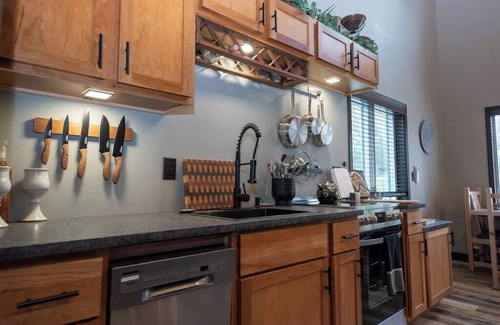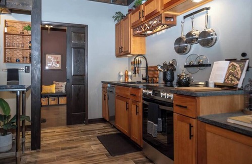 Escape to luxury and relaxation. Unwind by the fireplace or indulge in a soothing soak in your private hot tub, making this peaceful haven perfect for a luxury getaway with that special someone or friends. This beautifully designed home features two cozy bedrooms with plush queen beds, a fully equipped kitchen, a patio, and a mini outdoor kitchen area. Whether you are planning a long vacation or a quick escape, this home is designed to provide an unforgettable experience for any length of stay.
