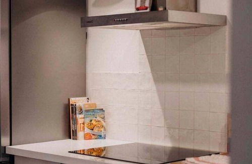Once inside, you will discover a beautiful much equipped modern kitchen with its solid historical parquet floor, and everything you need to cook during your stay.