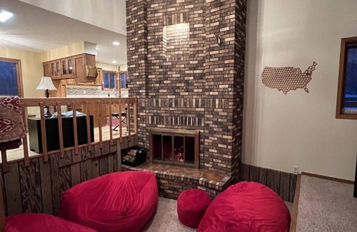 The Eagle's Nest - Cabin Home is a spacious and enchanting retreat located just outside of Eau Claire, Wisconsin, making it an ideal wedding accommodation for couples looking to create unforgettable memories. Nestled on seven acres of scenic beauty, this cabin-style home offers the perfect backdrop for your special day, whether you envision an intimate gathering or a grand celebration surrounded by nature. With its charming ambiance and extensive facilities, it's truly a place where love stories come to life.