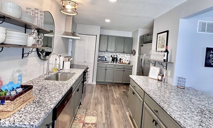This charming newly remodeled home invites you to experience the small-town living! Spend a day golfing at the Kingman Country Club, or enjoy a movie at the Kingman Theatre! Relax with a glass of wine by the fire pit roasting s'mores or cook a nice meal in the gorgeous kitchen with all new appliances!