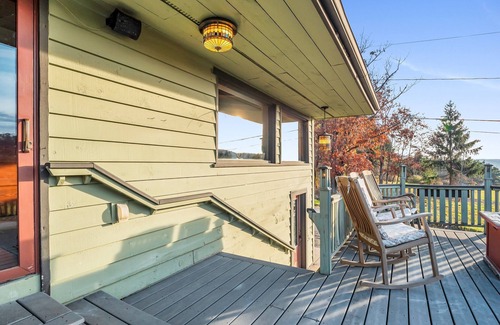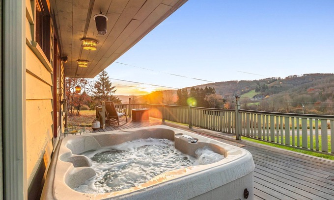 Experience The Eagles Nest in Ellicottville, a private 2-acre retreat with stunning views of Holimont Ski Resort. Enjoy the heated pool (seasonal from May 1 - October 15), outdoor hot tub, fire pit, and the best sunrise in Western New York! This two-bedroom getaway offers a full kitchen, washer/dryer, and plenty of space for families or couples. Perfect for year-round relaxation or adventure, it stands out with its privacy, space, and serenity.