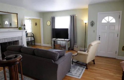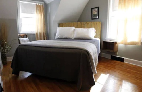 Two private bedrooms with queen size beds and TVs with a full bathroom on the upper level. Our house comfortably sleeps 7 guests. We have a RV/Camper pad with electric and water hookups inside the fenced in yard if you would like to bring your camper along too!