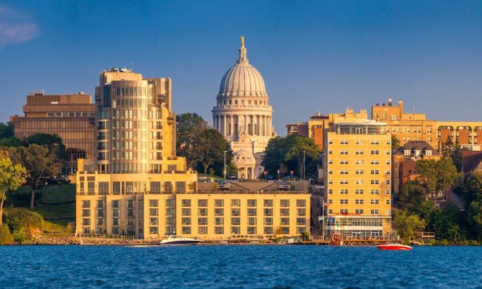 Located on the shores of Lake Mendota in Madison, this hotel offers a spa and wellness center along with 3 on-site restaurants. University of Wisconsin-Madison is 2789 feet away. A flat-screen TV and iPod dock are featured in all rooms at The Edgewater. All rooms also include a tile/marble floor, refrigerator, and a view. Select rooms have a sofa, spa bath, and kitchenette. At the Madison Edgewater you will find a fitness center and meeting facilities. The on-site plaza includes a seasonal ice skating rink and lush gardens. The fine dining Statehouse offers regionally sourced cuisine with an extensive wine list. The casual dining Icehouse and Boathouse offer pub fare, a great local brew selection, and views of Lake Mendota. The Madison Area Technical College and Overture Center For the Arts are both 1640 feet from the hotel. Camp Randall Stadium is 7 minutes’ drive away. Registered guests are responsible for the full repair and replacement costs of damages to the property of the hotel, and for extraordinary cleaning costs if required. This is above and beyond any other fees, including pet fees. Smoking is not permitted in rooms or public areas and will result $300 fine. Registered guests or their visitors who exhibit disruptive behaviors may be ejected from the hotel without refund. The hotel may also fine guests in the amount of compensation given to other third parties resulting from those disruptive behaviors. All guests in rooms shall be registered with the hotel. Occupancy shall not exceed fire code. People violating will be subject to ejection without a refund.