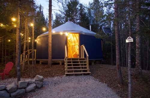 Guests will enjoy the surrounding forest and trails that we continue to expand. Our primary goal at Western Maine Yurts is to provide our guests with a four-season lodging option that is as connected to nature as possible. We aim to give a more luxurious and convenient camping/glamping experience where you can enjoy a hot shower after a day of outdoor activities. We hope you will enjoy unplugging from the demands of daily life and pause to listen to the rain on the roof, birds singing in the morning, and the breeze blowing in the trees. Take the time to enjoy a cozy cuddle on the couch with your favorite beverage, and get out and explore all that Western Maine and the Bethel area have to offer.