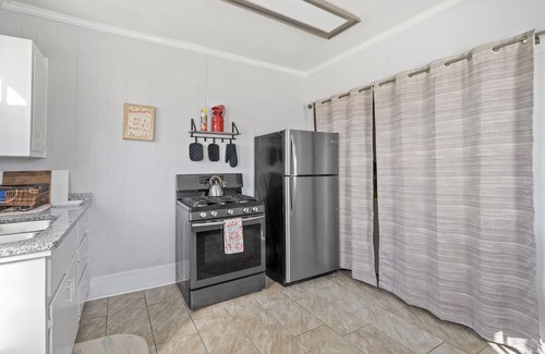 Cozy and comfortable with all the extras you need for a pleasant stay. The house is walking distance to parks, museums, restaurants and pubs.