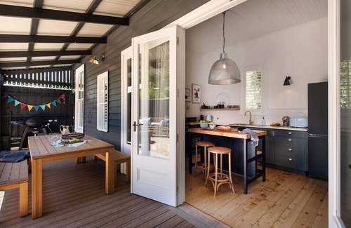 The new and charming, and fully equipped kitchen is perfect for any gourmet or group cook-up. The kitchen opens directly onto the rear veranda and outdoor entertaining area via large French doors; perfect for pre-dinner drinks, a BBQ lunch, or to gather around the fire pit in the evening. The wide eastern veranda off the dining room is the perfect spot to enjoy a cuppa and read the newspaper in the morning sun.