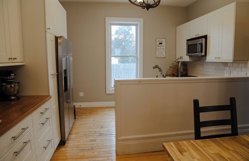 Nestled in the picturesque town of Goderich, known as the prettiest town in Canada, this newly renovated estate offers a perfect blend of comfort and elegance. With lush gardens, including a vegetable garden in the front and berry bushes in the back, guests can enjoy the serene outdoor space. Inside, the home features ample natural light, an open-concept kitchen and dining area, a cozy living room equipped with family-friendly entertainment, and a dedicated playroom for children.