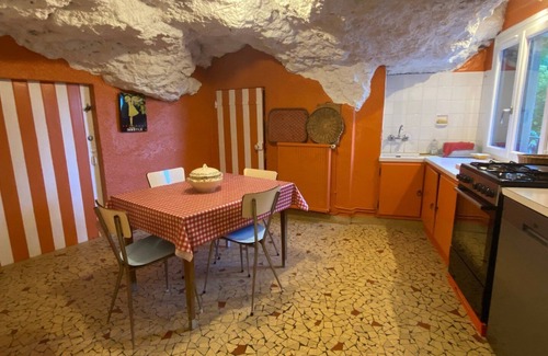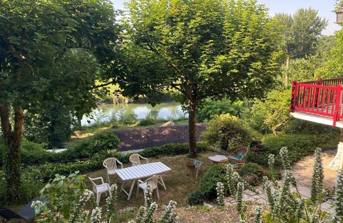 Large house leaning against the hillside, enter through the first terrace in a small airlock to access on the right the troglodyte kitchen and on the left the very bright living room with its comfortable lounge and its dining area offering a beautiful view of the Indre valley. On the first floor, the corridor leads to a small bedroom with 2 bunk beds (for children only), a double bedroom with its private terrace overlooking the park, a bathroom-shower-wc and finally a master bedroom with its queen size bed and its private balcony facing the river. Outside, espaliered a second grassy and shaded terrace. Go down about twenty steps to access the private land on the banks of the Indre to enjoy the tranquility of the place and the wooden pontoon. Small clarification: access to the house from the parking lot has a difference in level of about fifty steps under a planted arbor which may present difficulties for people who have difficulty walking.