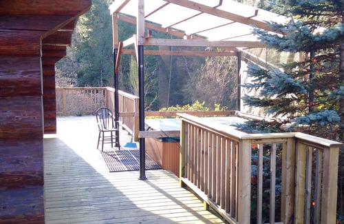 •The Enchanted Woods Log Cabin is best suited for families or small groups of friends who have a passion for nature and are looking for a quiet, peaceful retreat. Secret Cove is a tidal fjord with amazing bird watching, marine wildlife, kayaking, swimming, and hiking. The property includes a private dock and access to your 2 kayaks, as well as a hot tub and outdoor shower.