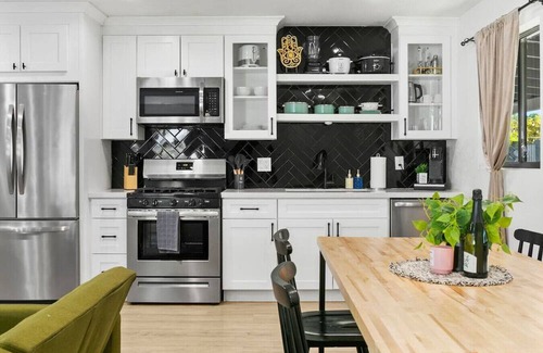 Bring your furry friends to our pet-friendly oasis with a safe, fenced backyard. There is no dog door available, but the property features a fenced yard, providing a safe and secure space for your furry friends to enjoy. Pet fee must be paid prior to arrival and host must be notified.