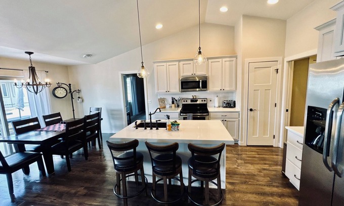 When searching for wedding accommodations, The Escape in Spearfish No Steps Dbl Gar No Gravel! offers an inviting and accessible setting, perfect for you and your guests. This beautiful home, nestled in the heart of the Black Hills, provides a seamless blend of modern amenities and rustic charm.