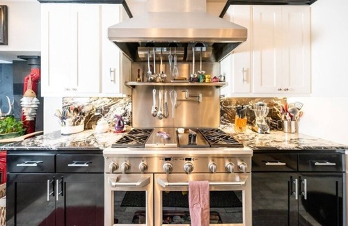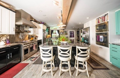 The first is a gorgeous multi-level home w/ 5 BR, 3 BA, a fully loaded gourmet kitchen with a spacious open concept LR/DR. The kitchen is complete with a massive central island, pot-filler in the superior GE 48" range with grill, 3 ovens, designer refrigerator and bar with a built-in ice maker. A huge ranch-style extendable wooden table sits in the dining room space. The master BR/BA are upstairs with a huge 2-person soaker tub & lavish shower. The ground floor has 2 BR &1 full BA. The basement has 2 BR and 1 full BA. All BR are sizeable and have queen-size beds with either shelving &/or closet space. There are t.v.s in every bedroom and living room. In addition, there are 2 fenced in yards with 2 giant elm trees for shade out front and a covered deck on the side of the house with lots of outdoor seating for 12.