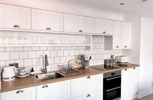 Fully Equipped Kitchen - prepare your favorite meals with ease in the fully equipped kitchen, featuring a 4-ring electric hob, oven, grill, washing machine, dishwasher, and fridge freezer.