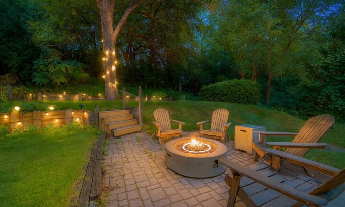 Step outside to a private backyard with a fire pit 🔥, perfect for roasting marshmallows or enjoying a glass of wine under the stars ✨. The colorful patio dining area is great for sunny breakfasts 🌞 or evening BBQs.