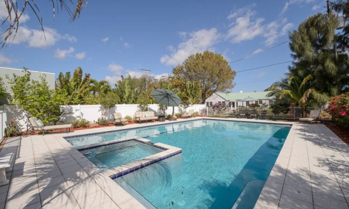 The Family Reunion Compound is an off-site (200 feet from the Main Hotel Building) compound of 4 historic houses/cottages (described in detail below) that are located on spacious grounds (approximately 1/2 acre) surrounding a large swimming pool with "Golden Mean" dimensions (44 x 27 foot lap pool) and spa as well as a large manicured lawn and garden. The compound is located just steps away from the scenic Riverwalk along the St. Lucie River and the renowned shopping, dining, and entertainment of Historic Downtown Stuart.