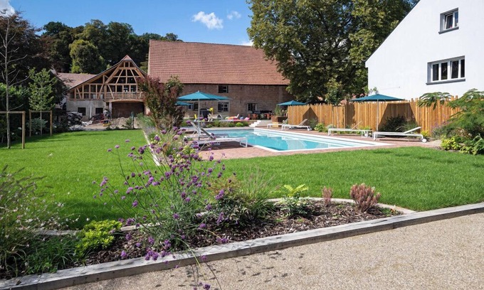 Best-rates for the Hangenbieten house starts from $1,436 per night with includes Parking, Pool, TV, Balcony/Terrace, Bedding/Linens, Wellness Facilities, Fireplace/Heating, Child Friendly, Air Conditioner, Security/Safety, Barbecue/Outdoor Cooking, Internet, Kitchen, Laundry with all other amenities. Perfect for Weddings is committed to ensuring every guest experiences a comfortable and extraordinary stay, whether planning a romantic getaway, a honeymoon, a pet-friendly stay, or celebrating with the entire wedding party.