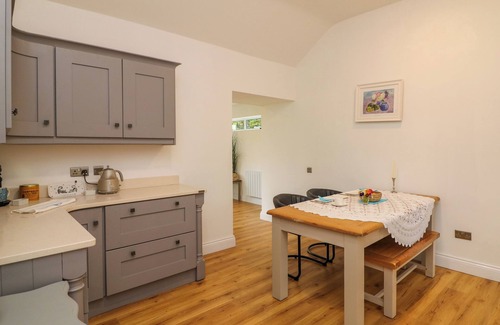 The Paddocks, a single-storey house, consists of a living/kitchen room with a kitchen with electric oven and hob, fridge, washing machine, dishwasher, kettle, and toaster, a sitting area with Smart TV, and a dining room with dining table, kettle and coffee machine. The bedrooms consist of a double and family room with a king-size and single, both with en-suite shower rooms. Outside, there is an enclosed rear patio and furniture, and off-road parking for two cars. One well-behaved pet welcome. Sorry, no smoking. Highchair, travel cot, and stairgate available. Shop 0.8 miles, pub 0.9 miles, river 2.1 miles. Visit The Paddocks for your next adventure. Note: Next to owner's house. Note: Check-in 3pm, check-out 11am.