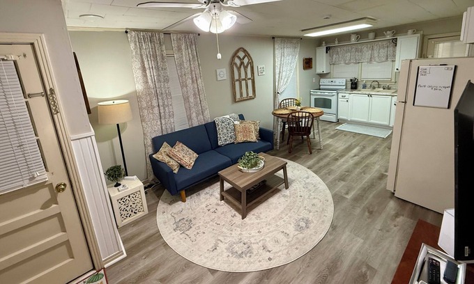 Nestled in rolling hills & farm land near Elkton TN, Newly Renovated- this farmhouse offers a true rural escape. Whether chillin' around the fire ring with the wind moving through seasonal corn or cotton, or watching goats at play year around, this is a getaway to cherish. With 2 cozy bedrooms - one with a queen bed and relaxing bathtub, and the other with a twin day-bed + trundle, plus an open living room with Futon+ fully equipped kitchen, this cottage feel yet with modern connectivity/amenities is perfect for your getaway. Very convenient to I-65 for a quick rest for the night, or secluded enough for a weekend or longer stay experience.