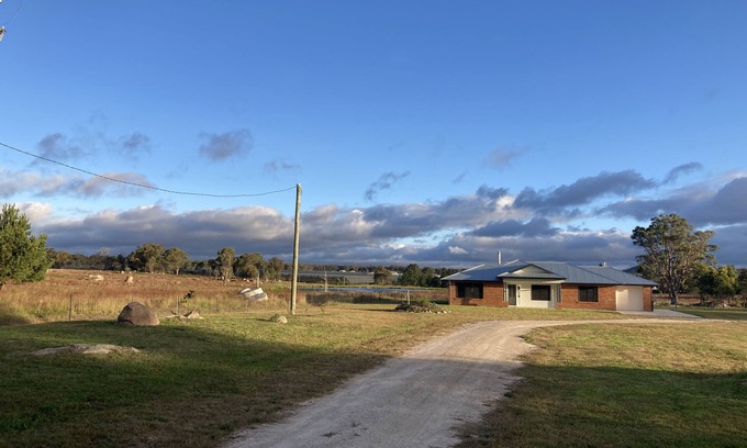 Set in a peaceful, country location in Applethorpe. With tranquil views of grazing land and overlooking a picturesque dam. Take a leisurely stroll through the granite outcrops and eucalypt bush on the 110 acres of grazing land. Only 8 kilometres from Stanthorpe's town centre this newly built house can sleep 6, 2 queen beds and 2 singles. Relax on the back patio or in the luxurious bath and take in the views while enjoying local, Granite Belt wines and cheeses.