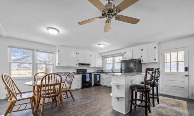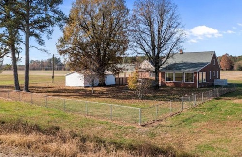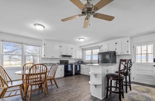 The farmhouse, while still on a working farm, is far enough away from the operation to provide a peaceful setting. Sit around the fire-pit and hear nothing but the sounds of the crackling fire, while you look up for shooting stars. Enjoy a fenced in backyard to let the kids and dogs run and play!