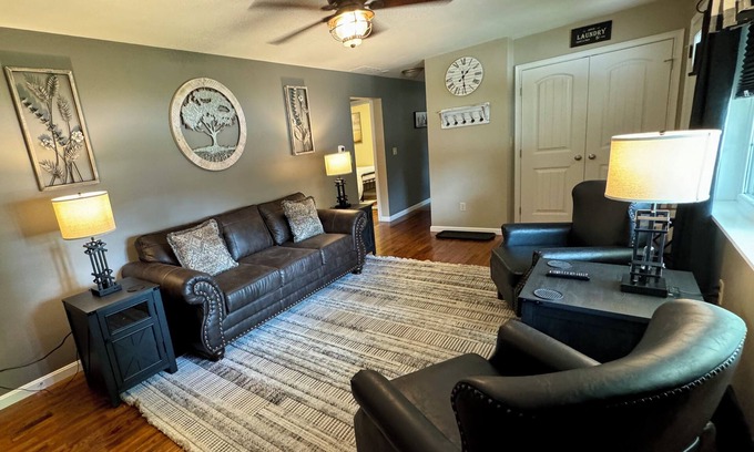 Easy Street features a warm, modern upscale décor with a farmhouse feel that sleeps 4 max. Recently renovated throughout 3/2024. Situated on the West edge of town with convenient access to WEC (just 2.8 miles away), hike and bike trails, fairgrounds, restaurants and more. You will also enjoy a welcoming front porch with outdoor seating. The attached garage has been transformed into "Easy Street Bar & Grill" with temperature control, a full motion 50" 4k smart TV with mini fridge, bar with dining seating. For us to maintain a consistency of high standards, we own, manage, and clean all our vacation rentals. We go above and beyond to provide you with additional amenities to ease the burden of traveling. We provide the following items for your stay; Toilet paper (4 rolls), paper towels (2 rolls), laundry soap, dryer sheets, dish soap, hand soap, trash bags, coffee, creamer, sugar, sweet & low, linens, extra pillows and blankets, hangers, first aid kits, shampoo, and body soap. We stage the unit for your arrival with lights on. We own and manage the entire cul-de-sac, which includes 3 additional vacation rentals (The Tranquility, The Beach House, and the Equestrian), as well as 11 long term rentals with great tenants. Our location to the World Equestrian Center is 2.8 miles, with a quick 5 min drive for your convenience. We live 5 min from the property and are available if you should need anything during your stay. We take pride in our properties and hope that you enjoy your stay and will book with us again at one of 6 properties.
