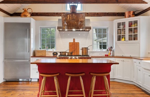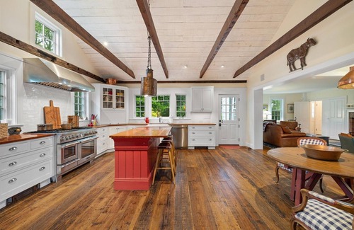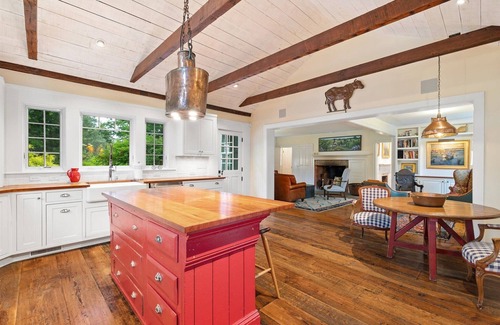 The main house at Golden Hill Farm is a renovated farmhouse appointed with luxurious furnishings and amenities. Surrounded by hundreds of acres of Audubon land with days' worth of serene walking trails, this well preserved circa 1700s farm provides a magical escape in the Quiet Corner.