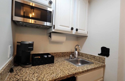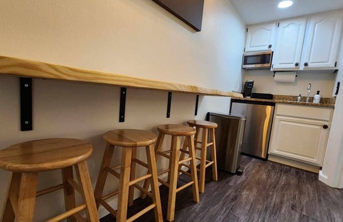 Welcome to The Farmhouse! This completely renovated condo unit sleeps 4 and offers brand new furnishings, 2 queen beds, 1 full bathroom with a tub/shower combo, a fully equipped kitchenette with a breakfast / dining live edge bar top! GREAT LOCATION, this 2nd floor unit faces the Adventure Park and is steps to Rodeo, Pool, Adventure Park, Saloon and More!