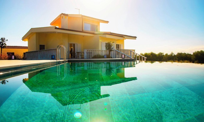 Best-rates for the Thermaikos villa starts from $411 per night with includes Balcony/Terrace, Guest Services, Ocean View, Child Friendly, Internet, Kitchen, Security/Safety, Wellness Facilities, Fireplace/Heating, View, Private Pool, Bedding/Linens, Entertainment, Laundry, Sports/Activities, Air Conditioner, Parking, Pet Friendly, Pool, TV with all other amenities. Perfect for Weddings is committed to ensuring every guest experiences a comfortable and extraordinary stay, whether planning a romantic getaway, a honeymoon, a pet-friendly stay, or celebrating with the entire wedding party.