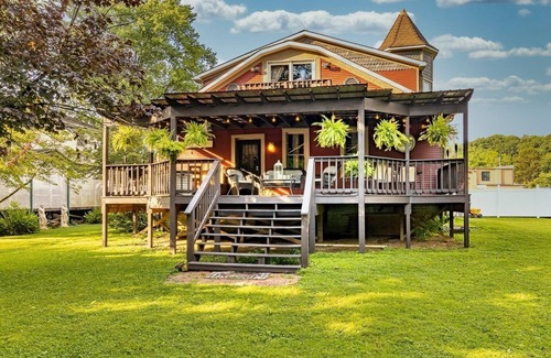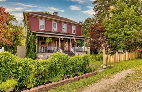 The Farrow House is a Victorian Style home situated in the heart of Nelsonville, Ohio. The Hocking River runs directly through the back yard of this property, The Hocking Valley Scenic railroad and Rocky Boot outlet are in the front of the house. Just a few steps away is the Hocking-Adena Bikepath. Old Mans Cave is located about 25 minutes from the property. Ohio University is 10 minutes away. The Historic Public square in Nelsonville is 2 short blocks away. Bring the family and enjoy a weekend fishing from the backyard or canoeing at the local Canoe Livery. There is a barbeque grill, Huge, outdoor furniture, a front porch swing, 2 mini ponds with Koi fish to feed. Private parking. This is a private whole house rental. The property offers a fully equipped kitchen with beautiful cook wear and dishes. Washer and Dryer with Laundry Soap. The home offers a formal dining room. The livingroom area has a flat screen TV with Digital cable and wireless internet.