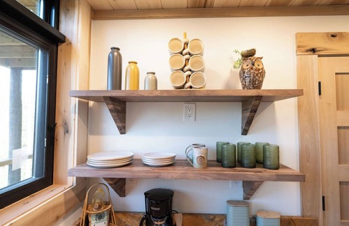 While The Fern does not have a full stove, it’s thoughtfully equipped with everything you need to prepare simple meals and snacks. Amenities include a microwave, mini fridge and freezer, toaster oven, coffee pot, toaster, and blender. Outside, enjoy your private charcoal grill for open-air cooking. Gather indoors at the small seating area or take your meals out to the balconies for fresh mountain air and stunning views.