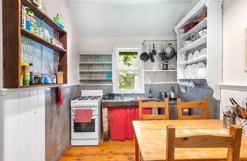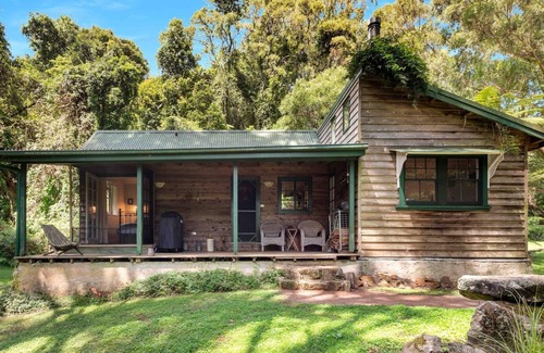 The cottage has two bedrooms and is designed with a rustic feel to blend in with the tranquil rainforest setting. To compliment this it is furnished with an array of eclectic furniture providing all the creature comforts of home. The main bedroom has a ceiling fans and French doors opening up onto the veranda to catch the cool summer breezes. Whilst during the winter months you can enjoy the warmth of the wood burning stove in the cosy living room.