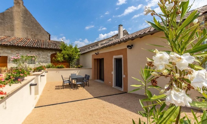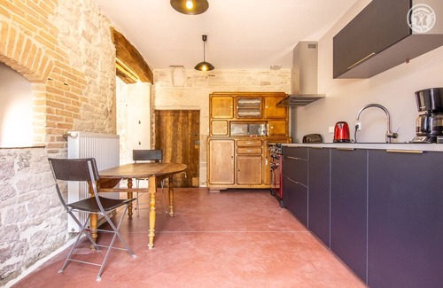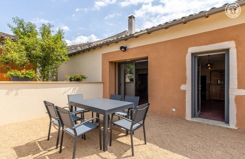 Passionate about cinema and a fine wine connoisseur (discovery tasting possible with him in the cellar adjoining the gîte), Bruno welcomes you to an authentic Burgundian residence of character from the 17th century steeped in history (old farm & winegrowers' house ), carefully and tastefully restored according to the rules of the art, nestled in the heart of a picturesque rural hamlet a stone's throw from the vineyards. Nestled in the hollow of a pleasant rolling landscape of gentle mountains alternating vineyard slopes, meadows & wooded hills at the foot of the Burgy mountain (preserved massif offering an exceptional panoramic belvedere up to Mont-Blanc on a clear day) this typical wine village of the Mâconnais with the Viré-Clessé appellation has a rich heritage to discover (Romanesque church & chapel from the 12th & 11th centuries, several castles, particularly medieval ones, numerous mills, wash houses, remains of a 13th century commandery, etc.). Spacious, very comfortable gîte. Vast living room with a sublime cathedral volume. Warm country style with contemporary accents, mixing tradition & modernity in a country loft spirit. Remarkable heritage restoration (conservation of Burgundy stone walls, stone & wood lintels, frames, tiles, old bread oven, stone sink and warmer, French ceiling, etc.). Charm, style & character. Elegant, opulent and refined atmosphere. Cozy & ultra cocooning. Large gravel terrace on the west side adjoining a relaxing mini garden. Composition: Single-storey village house adjoining 2 apartments rented year-round (total independence without vis-à-vis). Wireless. PAC heating. Living room-kitchen-lounge (SmartTV / Orange bouquet / extra convertible sofa 2 p. 140x180cm), 2 bedrooms (double bed 160x200cm / double bed 140x190cm), bathroom (shower), separate WC. Terrace + garden + private parking. All amenities 7.5 km. Gite labeled Vignobles & Découvertes and Accueil Vélo