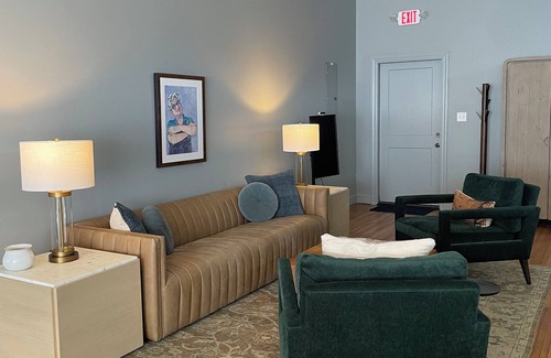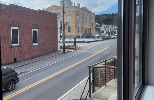 This stylish studio apartment offers approachable luxury. A studio apartment modeled after the legendary hotel rooms of The SoHo House private clubs around the world, this is the perfect couples home base to explore Gainesboro and the beauty of Jackson County. Features a massive 108" x 108" empire king bed, a comfortable couch and sitting area, fully equipped kitchen and bath with hand tiled walk in shower and dual vanity sink as well as a dining room table with 10 chairs. The Fig Flat is a large, 1,200 sf studio apartment with fully equipped kitchen and bath located just off the historic Gainesboro Town Square. It is the perfect couples retreat home base for exploring Gainesboro and Jackson County. Walking distance to The Stolen Coin Bistro, Roaring River Distillery, Gain Mod art museum (opening soon), Honest John's Frozen Custard ($10 gift certificate provided), and a number of antique and gift shops. Miss Sallie's Market, a fresh food market with groceries and prepared foods is right next door (10% off coupon provided). The Fig Flat is located at 210 A East Hull Avenue in Gainesboro, Tennessee and accessible directly from the East Hull Avenue ramp entrance with two small steps on the second floor just above "Hare-in-the-Chair" hair salon. Free parking is available on East Hull Avenue or nearby side streets.