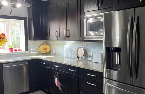 Large open kitchen with all the amenities and large egg charcoal grill for all your cooking pleasures.