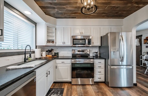 The cottage is tastefully decorated with a rustic, fir country vibe. Three bedrooms, two bathrooms with cozy blankets, comfortable mattresses and couches, plush bath towels, heat and A/C for ultimate comfort during your stay. We've dialed in to all the small details such as a fully stocked kitchen with a coffee and tea bar, a selection of games, puzzles and books and complimentary toiletries.