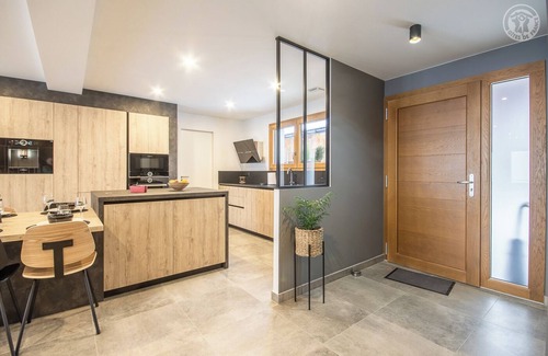 House adjoining a holiday accommodation on 2 levels. Ground floor: living room-kitchen lounge area (TV connected to the Orange bouquet with Bluetooth function and radios) opening onto the terrace, laundry room, 1 PRM bedroom with private shower and WC (1 double bed 160 x 200 cm) with a bay window, separate WC (washbasin). 1st floor: 4 bedrooms each with a private bathroom (shower and WC) opening onto a terrace, including 3 bedrooms with 1 double bed 160 x 200 and 1 bedroom with 1 double bed 160 x 200 cm and 2 bunk beds 90x200cm. In the heart of a small hamlet, 2.5 km from the village of Bellecombe en Bauges, this beautifully restored gite in a very contemporary spirit stands out for its brightness and its bay windows. Various games and books are available for children in the lounge area located upstairs. Skis, bicycles or roof boxes can be stored in the owners' personal garage on the ground floor of the gite. 2 parking spaces are provided in front of the house with, if necessary, a public car park 50 m away.