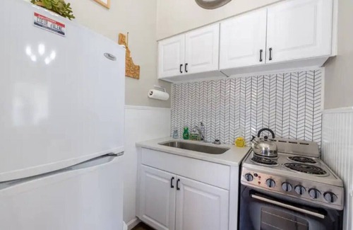 This cozy apartment is furnished with everything you will need to enjoy your stay. In the living room we have a TV, and Roku for streaming, and a hide-a-bed couch for additional guests. The Flat comes fully stocked with toilet paper, soap products (shampoo, conditioner, body wash, hand soap, dish soap) as well as bed linens and towels. In addition, the kitchen is fully equipped and is stocked with paper towels, coffee, cookware, dishes, glasses, utensils and standard small appliances. Recently renovated one bedroom apartment in historic multiplex building. Being an older building, doors and floors are prone to squeaking :) This apartment shares a common entrance/foyer with the 3 other units in the building. Please note that this is a bottom floor apartment and noise from other guests or tenants may be possible. The AC is provided through a window unit and heating is through electric baseboard.
