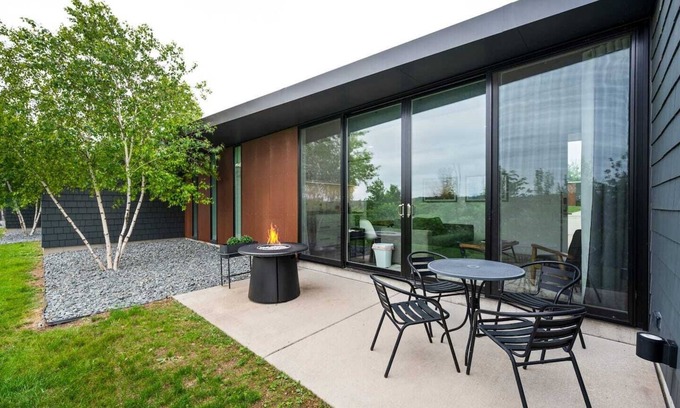 The Flats were designed with the modern traveler in mind by renowned architects Johnsen Schmaling Architects of Milwaukee. This development was honored by the AIA-Wisconsin with an Honor Award in 2020. Each 500 sq ft flat has a bedroom, bathroom, and full kitchen, as well as large windows that offer views of the private patio. Located within walking distance of Egg Harbor, the Flats offer easy access to a range of shops, restaurants, and bars.