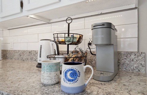The home is recently renovated and decorated for comfort and convenience while feeling relaxed and stylish. The home sleeps 8 with a king bed in each of the 3 bedrooms and a futon that is almost the size of a queen bed in the bonus room off the living room (no door). All bedrooms have wireless charging stations with USB outlets, a full length mirror and a smart tv. All TVs in bedrooms and living room have Hulu, Netflix and Amazon Prime apps (with your sign in). There are two full bathrooms, one with a walk in shower and one with a tub/shower combo. The home is fully stocked with bed and bath linens, hair dryer, kitchen with cookware, dishes, slow cooker, blender, toaster, air fryer, mixer, Keurig coffee maker, French press, electric water heater for tea, creamer, sugars, and tea.
