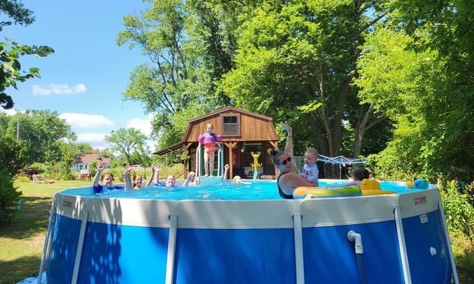 Tiny house located at end of paved lane. Open area with sleeping loft. Private bath , kitchenette. Large outdoor area with county feel. An attached 12x10 screened in porch. A 15 ft round Above ground pool.