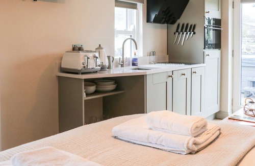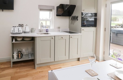 The living areas in this single-storey property consist of a studio-style layout with king-size bed, kitchenette with electric oven and 2-ring induction hob, microwave, fridge and dishwasher, a dining area with seating for two guests and sitting area with Smart TV. There is also an en-suite shower room with walk-in shower. Outside there is a private front patio with furniture and hot tub, as well as off-road parking for one small car. One well-behaved small dog welcome. Within 1.1 miles you will find a shop and within 0.2 miles, a pub and please note that this is a non-smoking property. WiFi, fuel, power, bed linen and towels are all included in the price. The Folly is a charming base for a romantic getaway in North Yorkshire.
