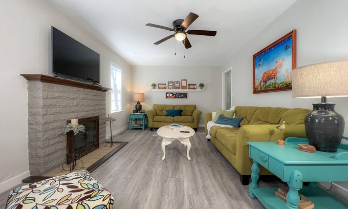 The Fox Den is a uniquely decorated property, celebrating Ponca Citys' history and our beloved foxes. This property features original artwork from local artists, as well as books and photos of days gone by. This is a 3 bedroom/1 bath property with a game room or dedicated office space. There is a full kitchen, full size refrigerator, pots/pans, coffee bar, washer and dryer, 2 tvs, and plenty of games and books. The host loves to meet guests and talk about the history of Ponca.