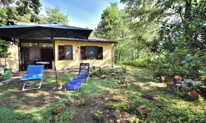 Cozy, well-kept family holiday home. Located on a hill 330 meters above sea level and 20 minutes away from the first beach (Marina di Castagneto). Fresh at night, livable both inside and outside during the day enjoying the garden, equipped with Mediterranean trees and plants such as oaks, rowans, strawberry trees, oleanders, probes, jasmine, gorse, wild strawberries (in season) and with beautiful grove private. Cottage style, free on three sides, glazed veranda opening onto the garden equipped with second hob and sink to be able to cook almost outdoors near the garden. The exterior of the veranda consists of a rustic and well-kept garden equipped with barbecue, wood, lighting, umbrellas, deck chairs. Thanks to the outdoor space and privacy, the house allows relaxing and pleasant days thanks to the excellent distribution of indoor and outdoor spaces. I love to go to this house to concentrate, both to read and to work. The veranda is a quiet and pleasant workplace. Being one of the few on-site accommodations with Wi-Fi, the house is also ideal for working peacefully remotely. During the autumn season it is equipped with heating, fireplace and an excellent wood stove that allows you to stay on the veranda even during the winter days. About 250 meters away, after crossing the grove, and turning on the left you reach the Faro del Castelluccio swimming pool, undoubtedly the most beautiful in the area, panoramic and with an adjacent restaurant / pizzeria. The swimming pool serves the village and its access must be agreed when booking the house.